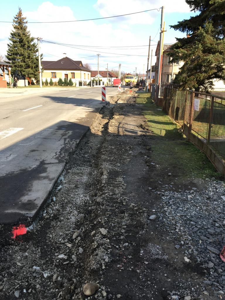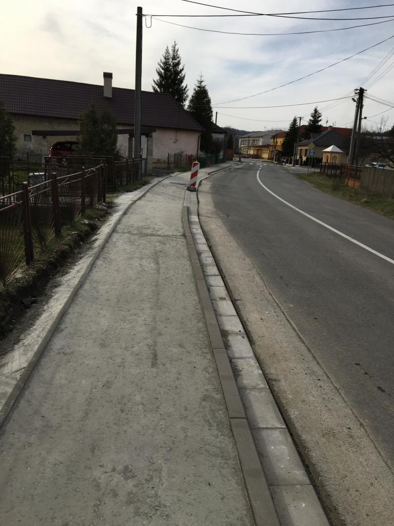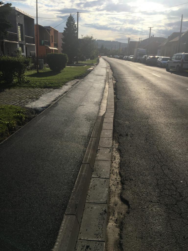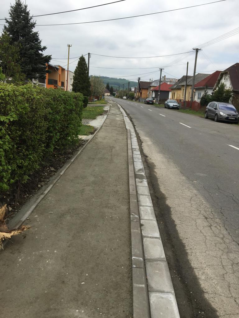 Pôvodný chodník sa vybúra v plnom rozsahu vrátane podkladového betónu, obrubníkov a vjazdov k rodinným domom. Šírka nového chodníka bude 1,5m všade tam, kde to umožňuje priestor.